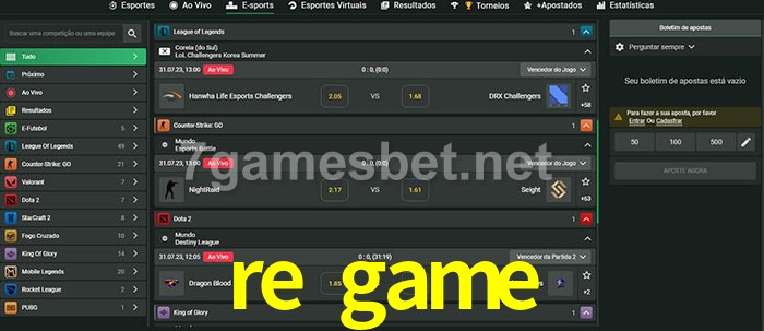 O re game oferece uma grande seleção de opções de apostas em e-sports com probabilidades competitivas